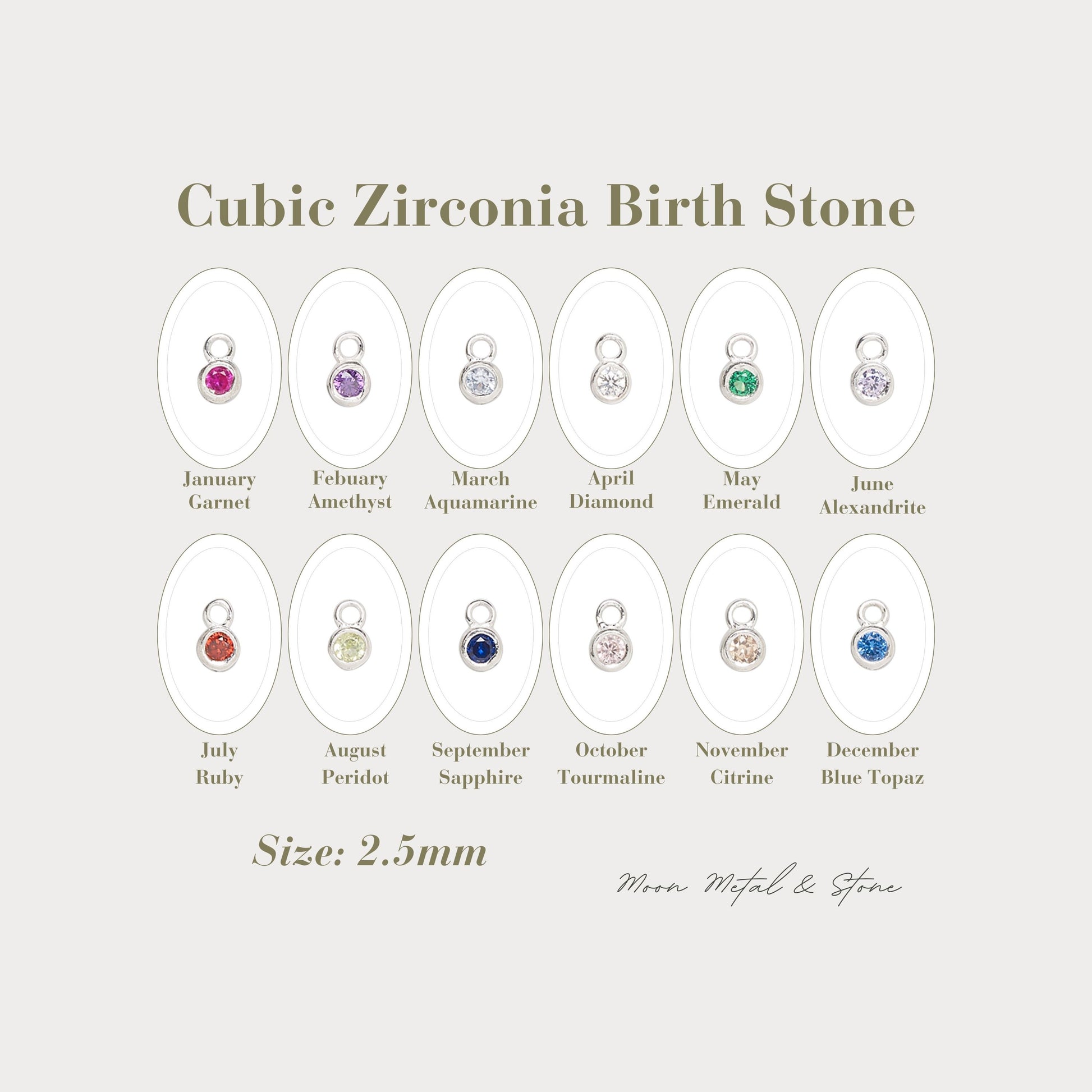 Add a delicate touch of sparkle to your jewelry with this tiny birthstone charm, handcrafted from fine silver and set with a 2.5mm cubic zirconia to represent the birthstone of your choice. Designed for effortless layering, this charm is perfect for adding a meaningful detail to your favorite necklace or bracelet.