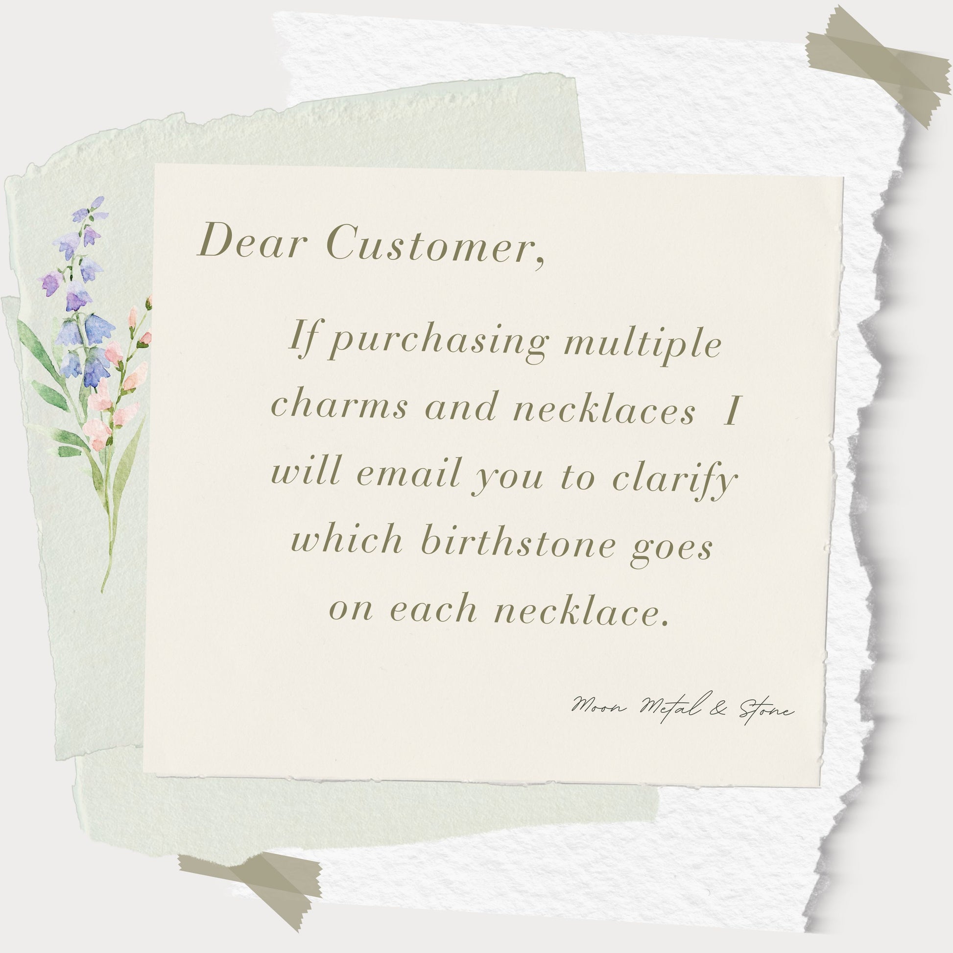 If purchasing multiple charms and necklaces I will email you to clarify which birthstone goes on each necklace.