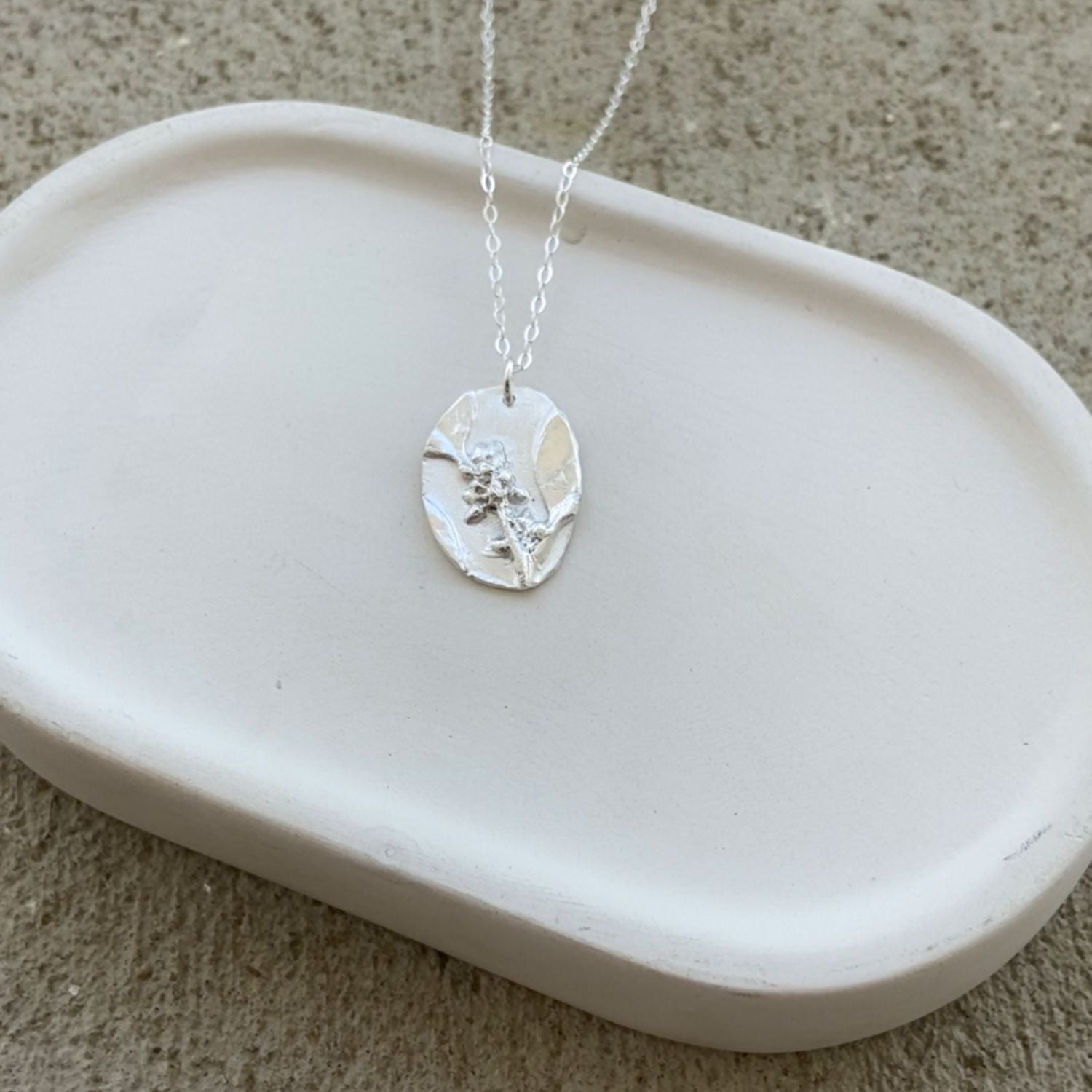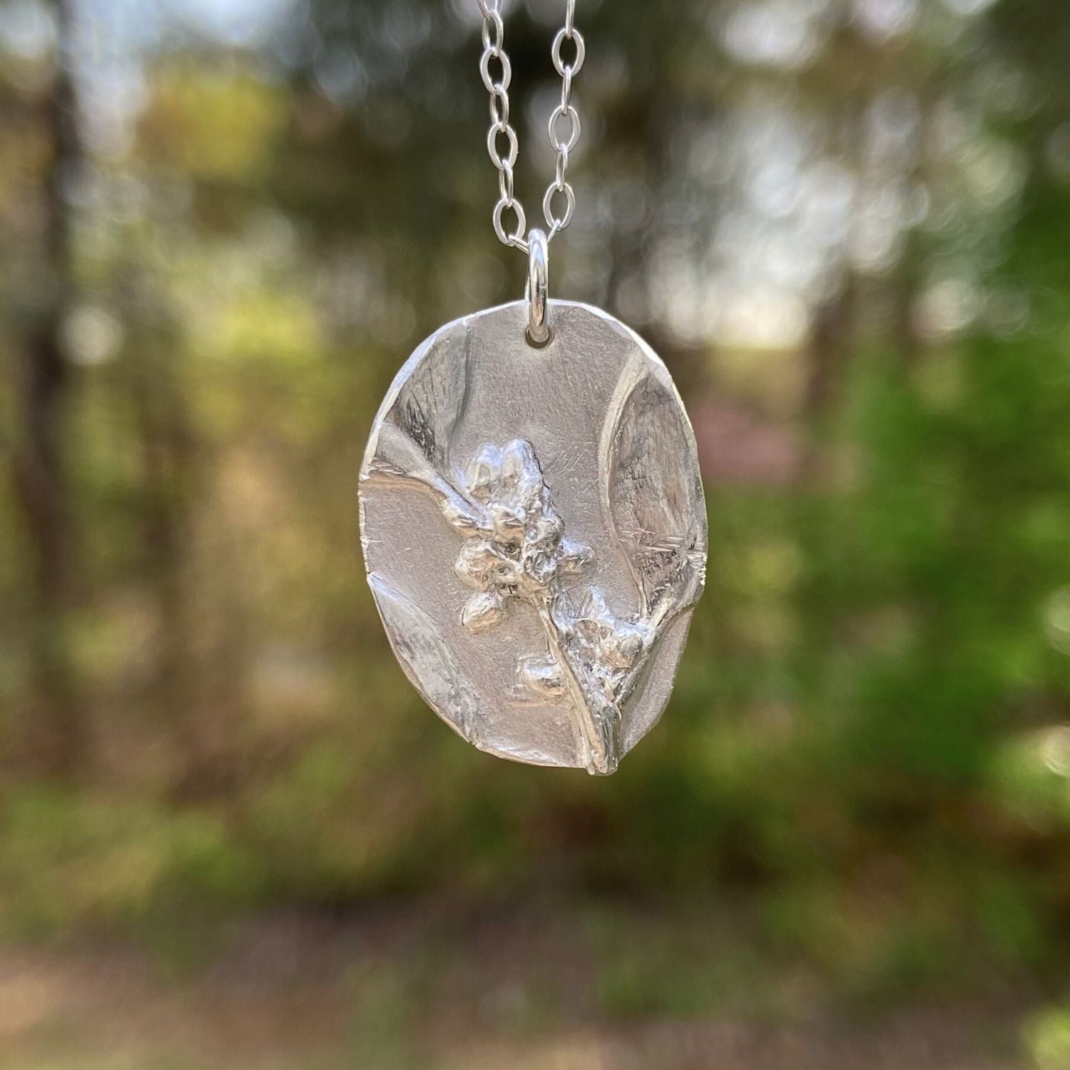 Handcrafted in fine silver, this blossoming branch necklace is inspired by the beauty of renewal and the strength found in life's constant cycle of growth. Wear it as a symbol of your own blossoming potential, a reminder that every moment holds the possibility of new beginnings and flourishing dreams.