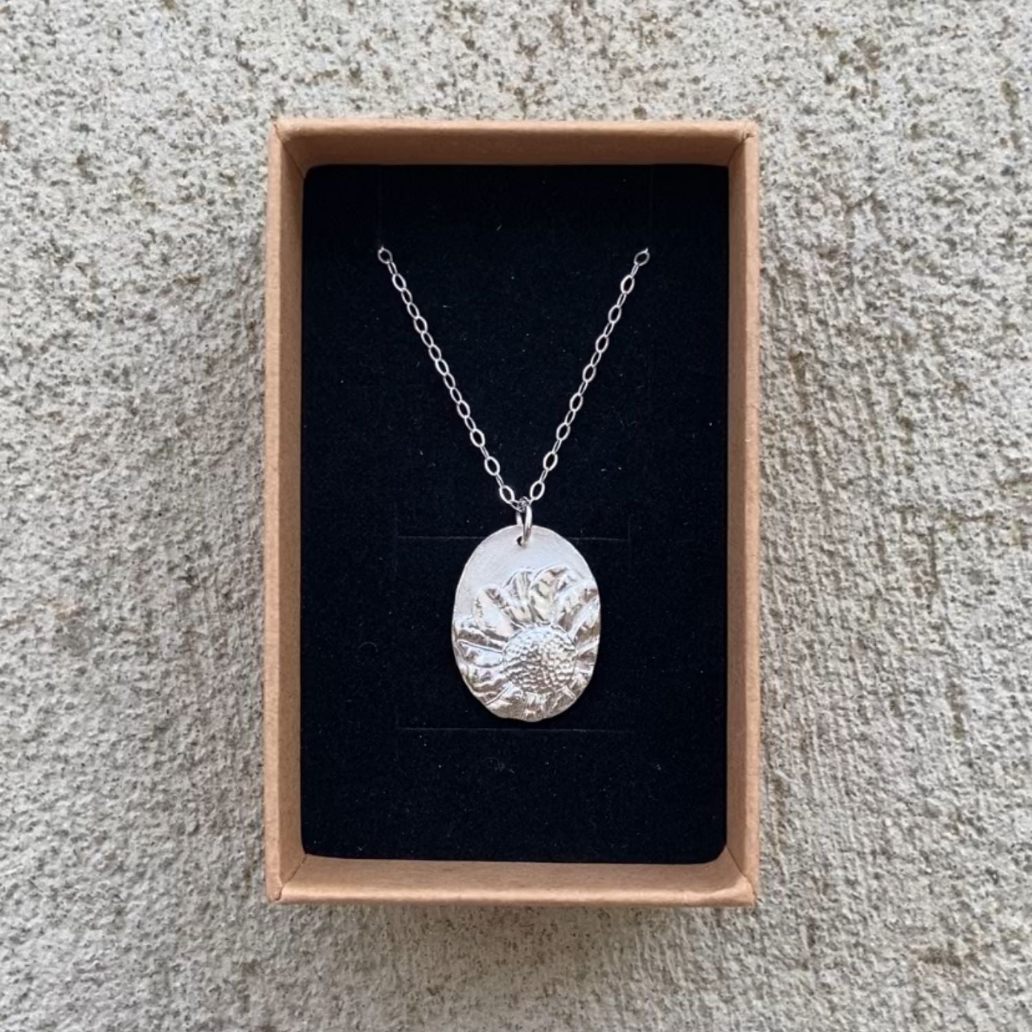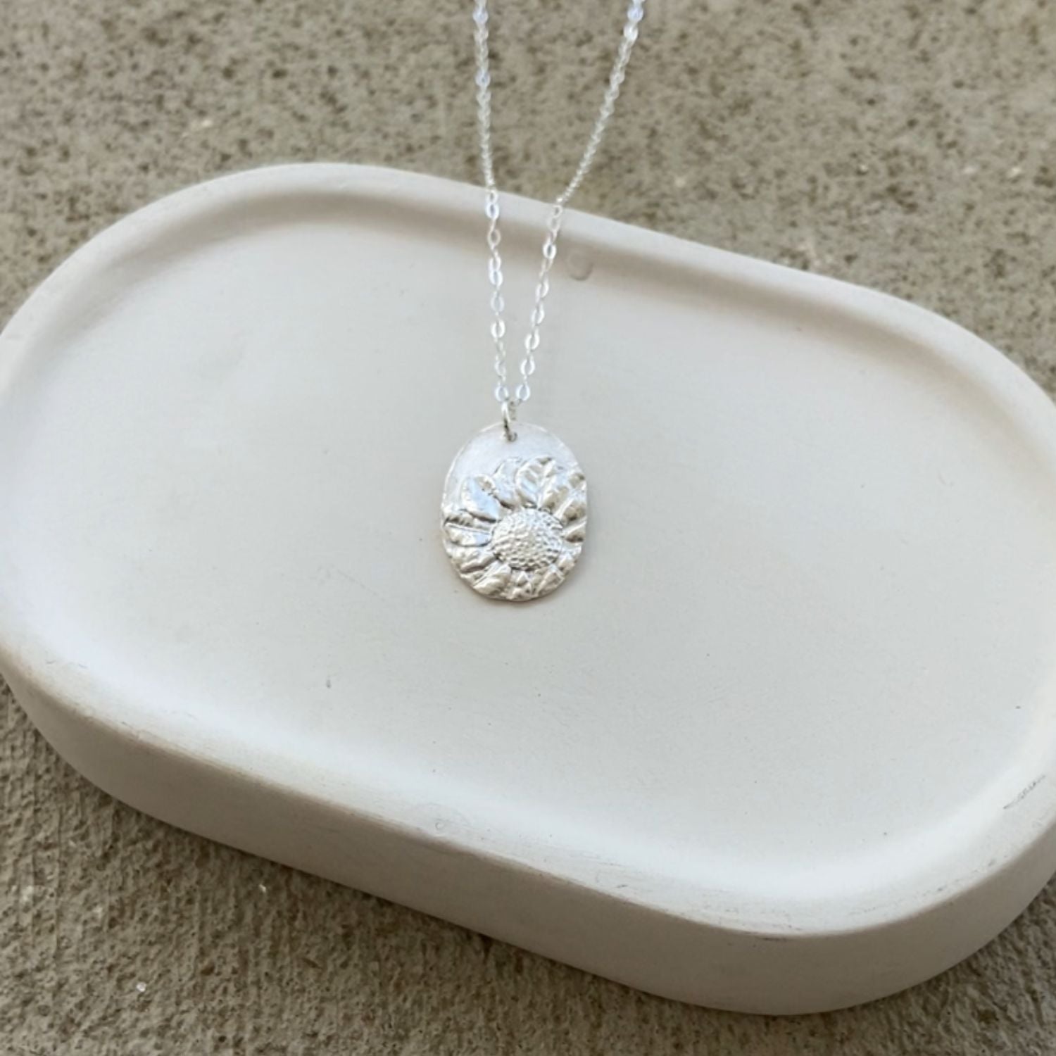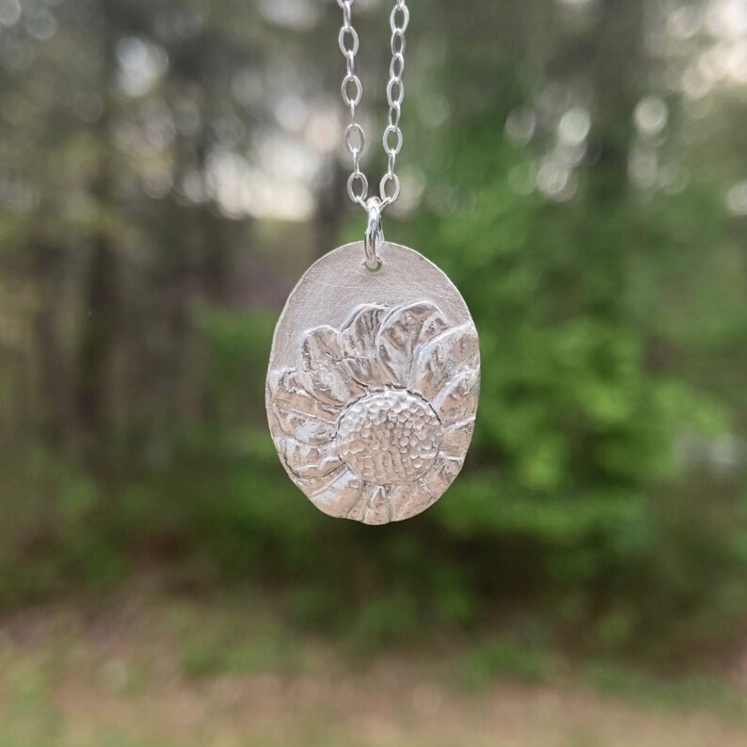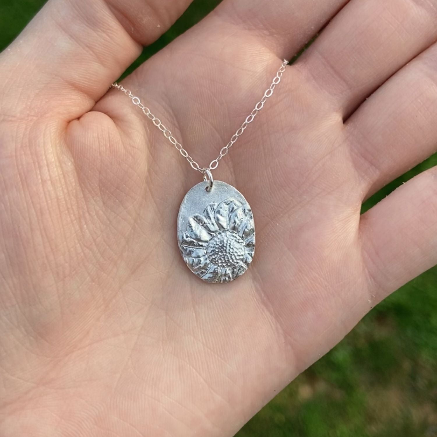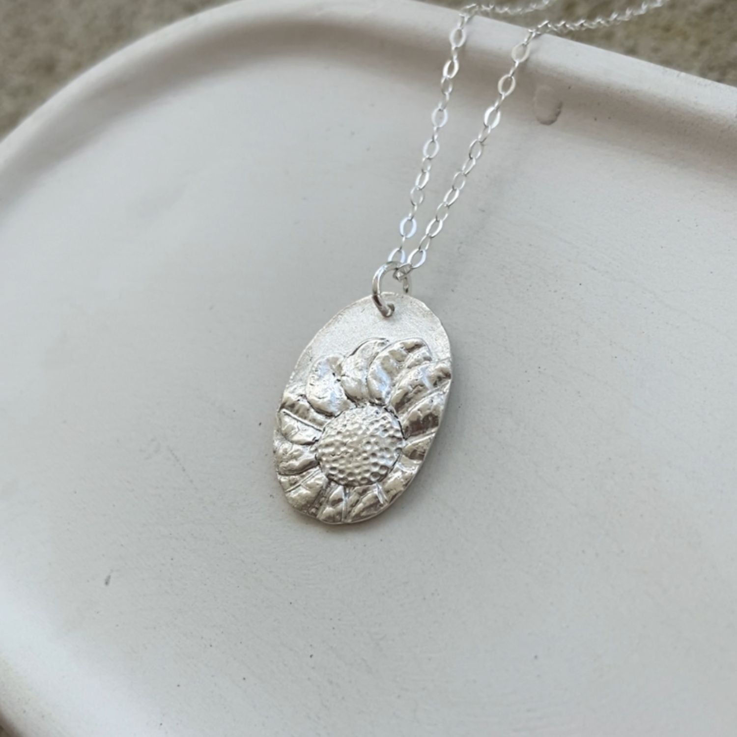 Handcrafted in fine silver, this off-center flower necklace with textured petals that reflect the natural beauty of imperfection and the strength found in embracing life’s unique paths. Wear it as a reminder that true beauty lies in individuality and the courage to stand apart while staying rooted in your essence.