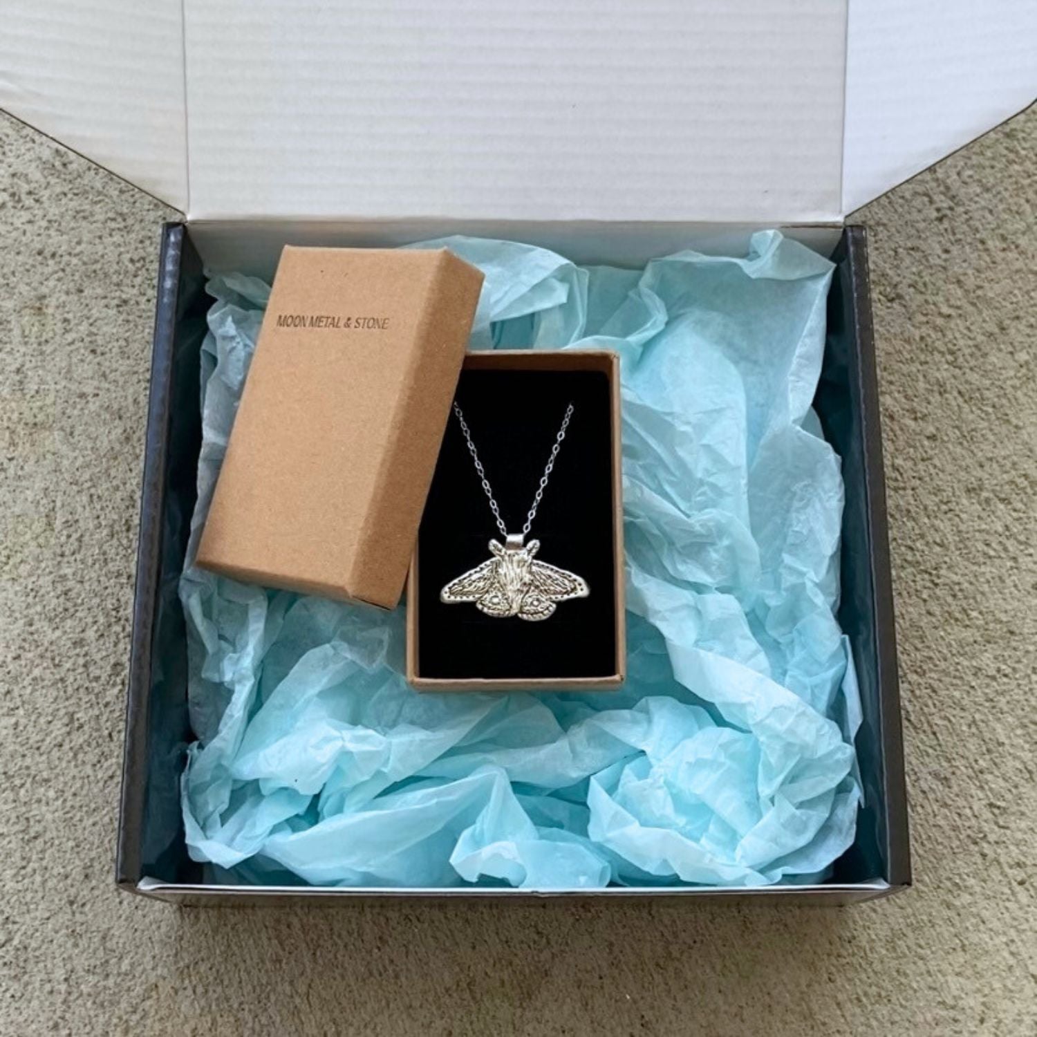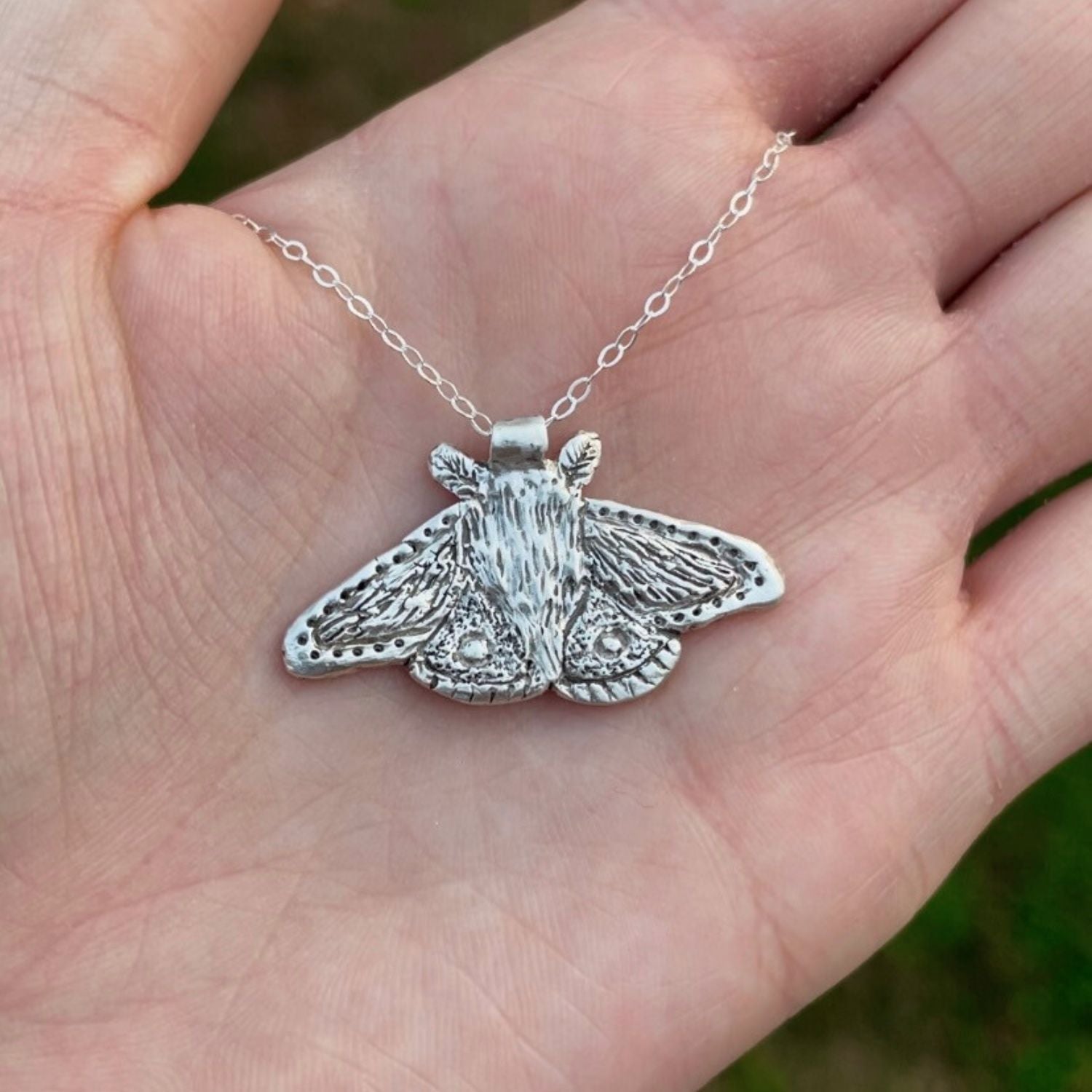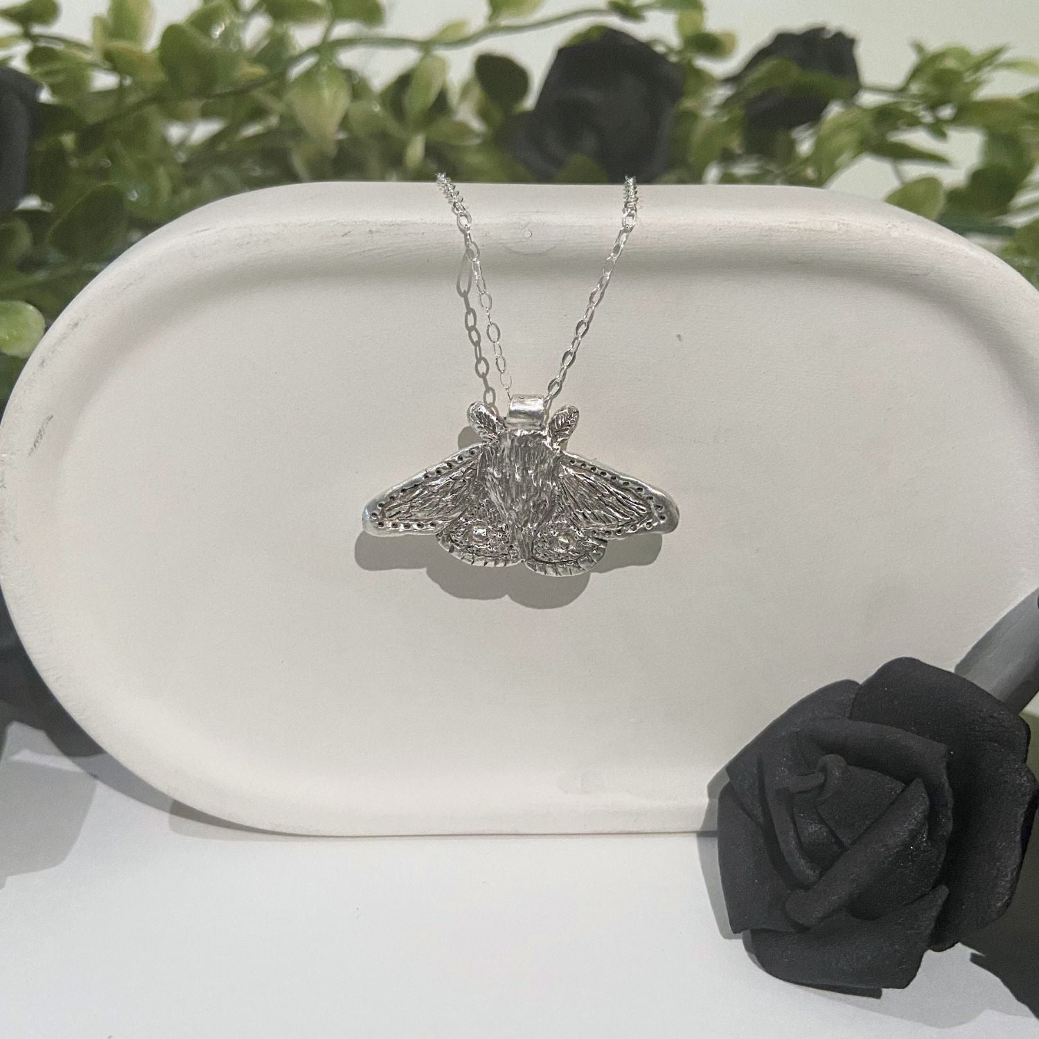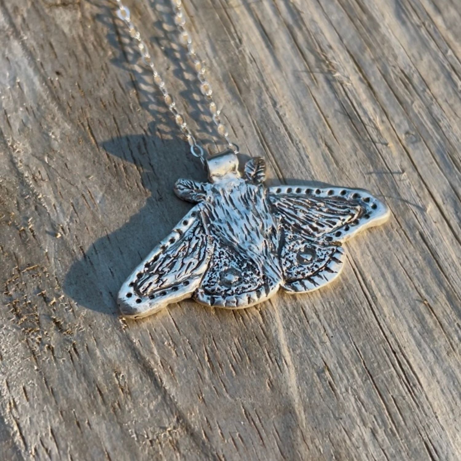 Handcrafted in fine silver, this moth necklace is inspired by the quiet beauty of transformation and the delicate balance between light and darkness. Wear it as a reminder of your own journey of growth and the courage to embrace change, no matter how subtle or challenging.