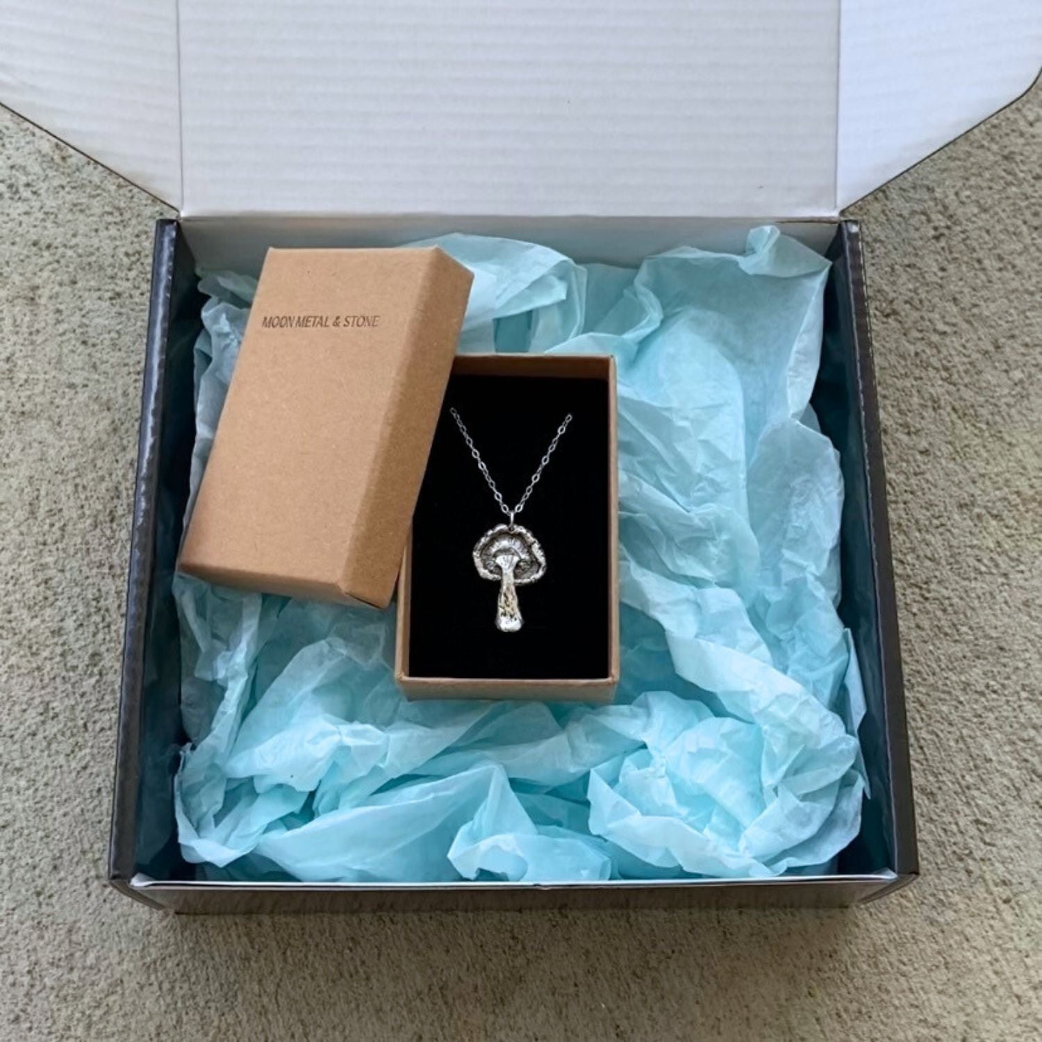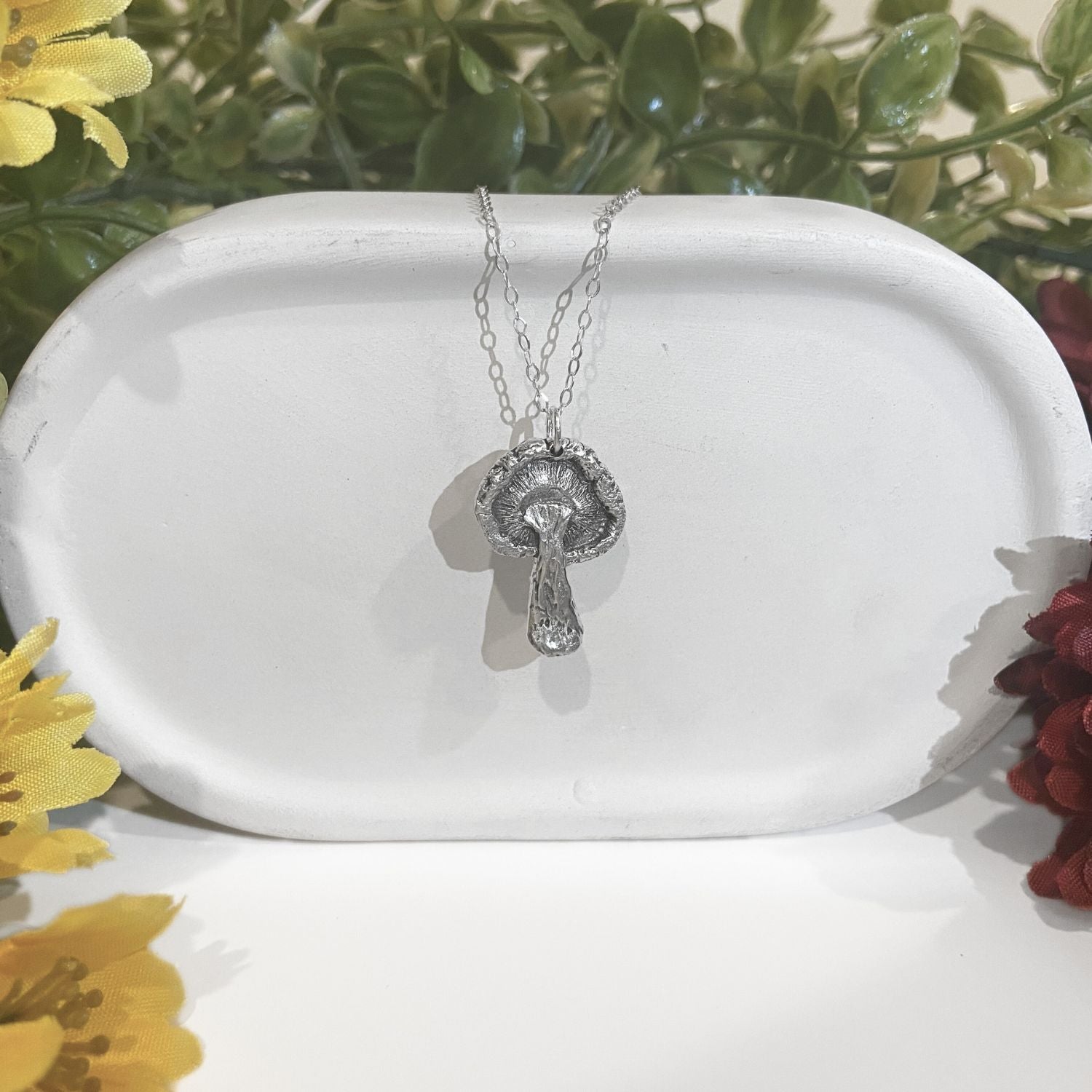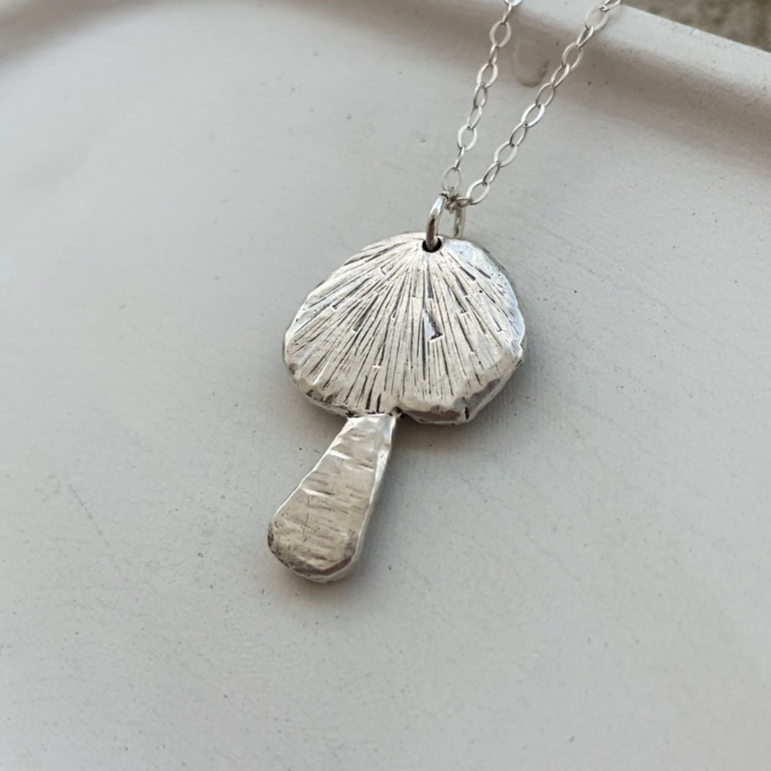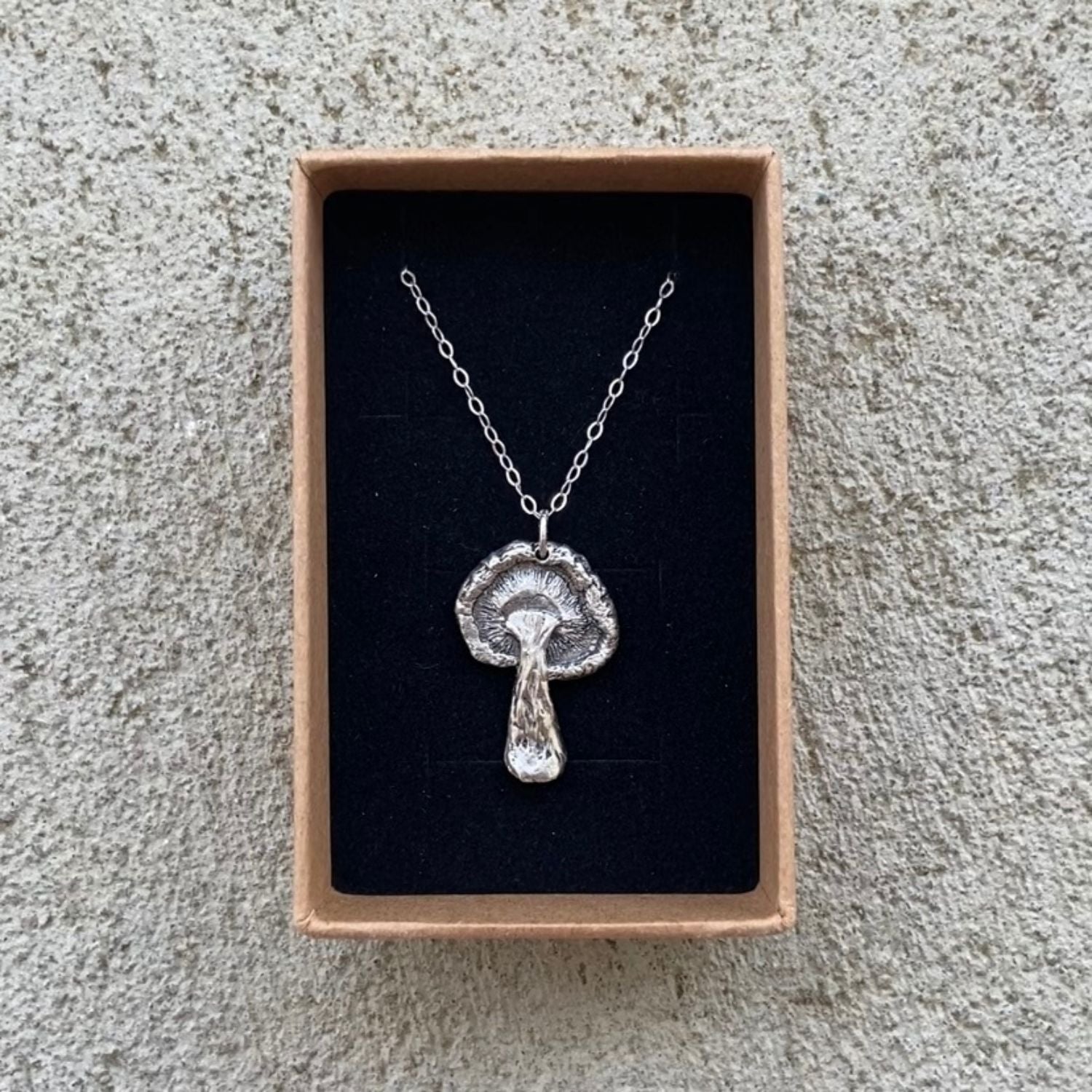 Handcrafted in fine silver, this shiitake mushroom necklace is inspired by the quiet wisdom and grounding energy of the forest, symbolizing nourishment, balance, and transformation. Wear it as a reminder to embrace life's subtle growth, finding strength in simplicity and the beauty of natureās cycles.
