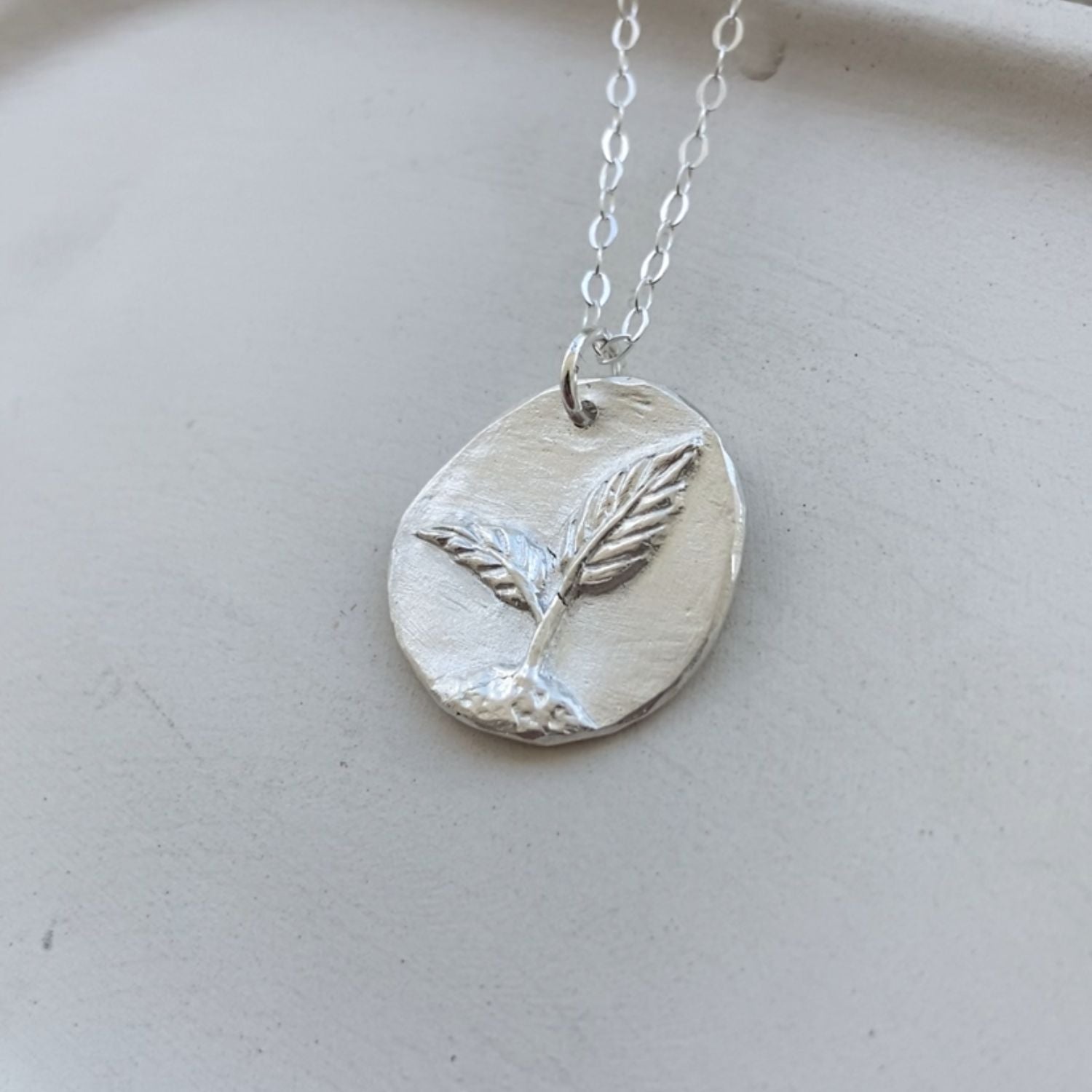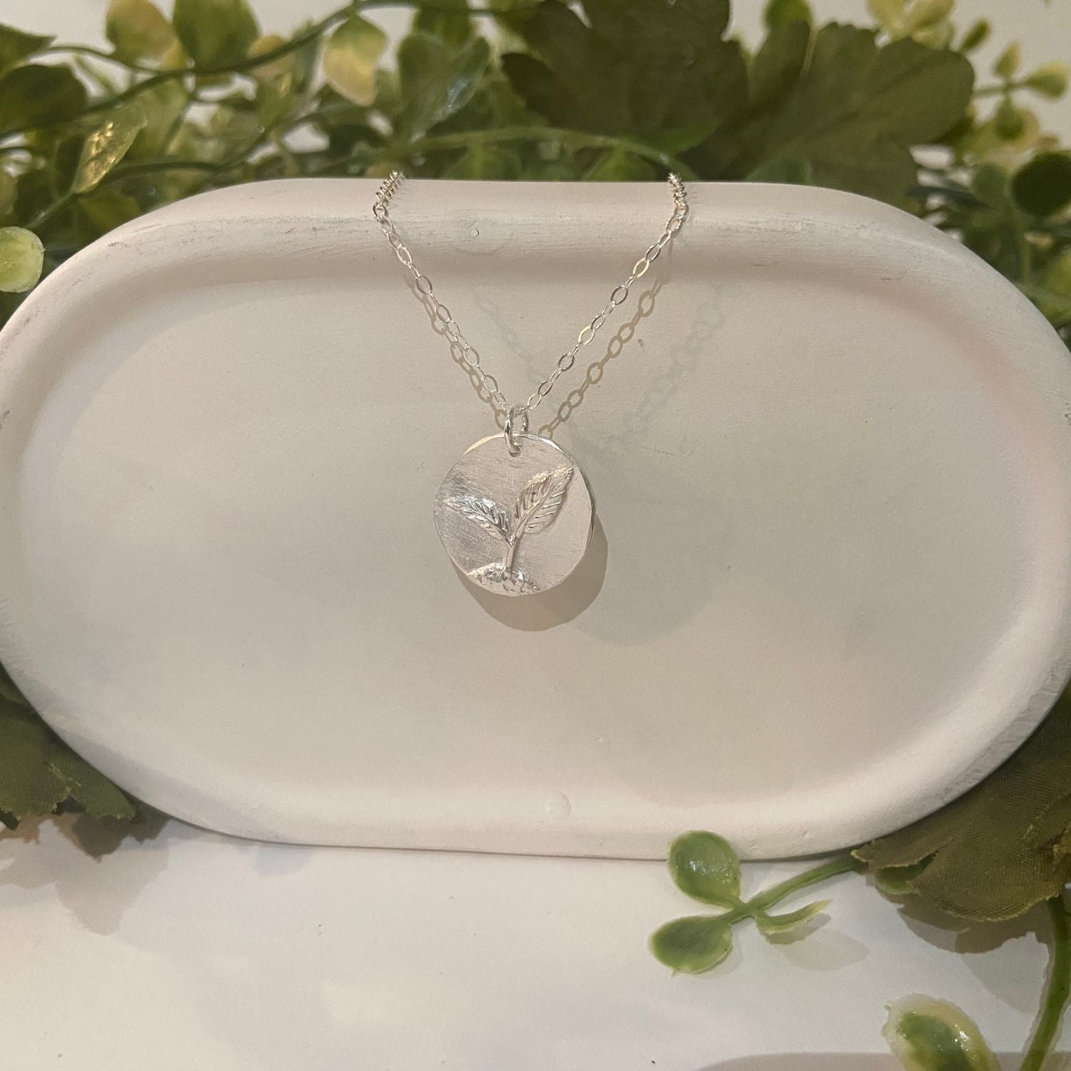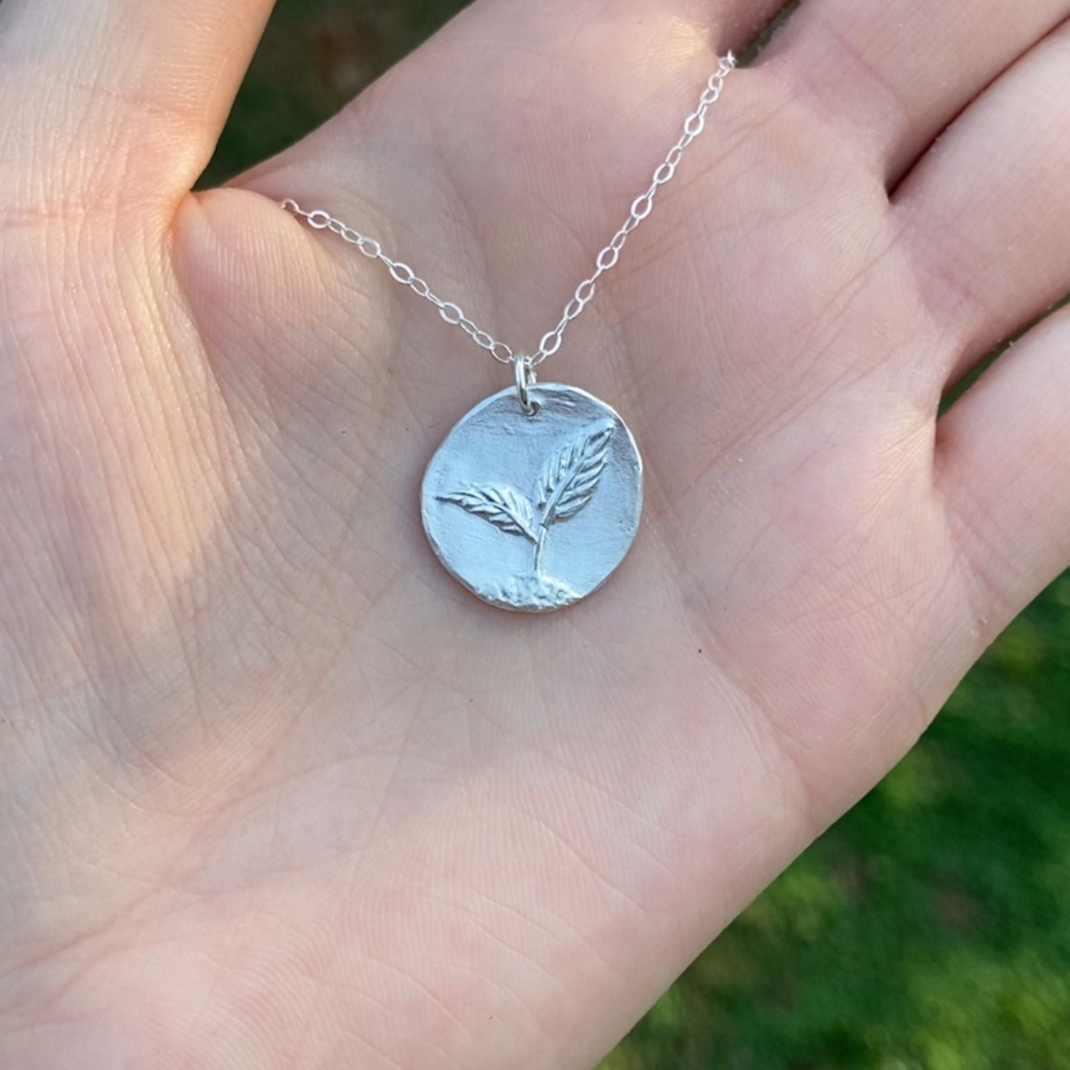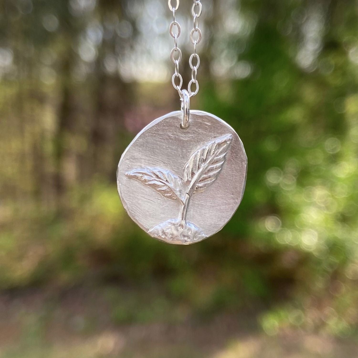 Handcrafted in fine silver, this delicate seedling necklace represents the beauty of new growth and the power of fresh beginnings. Wear it as a symbol of hope, potential, and the beauty of starting small and reaching for the light.