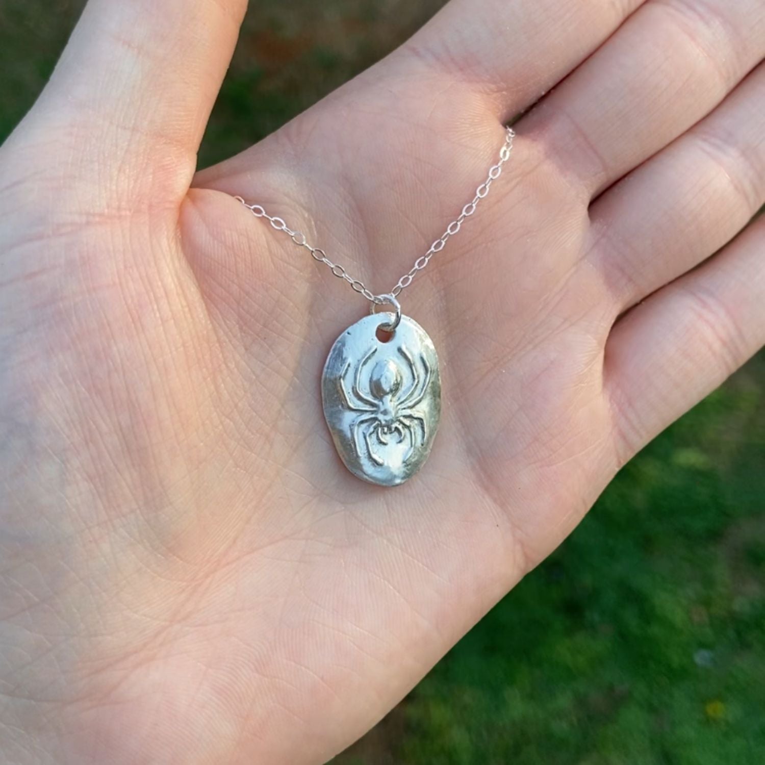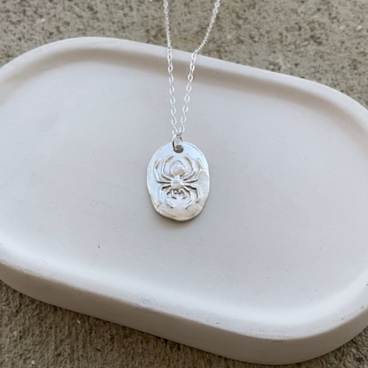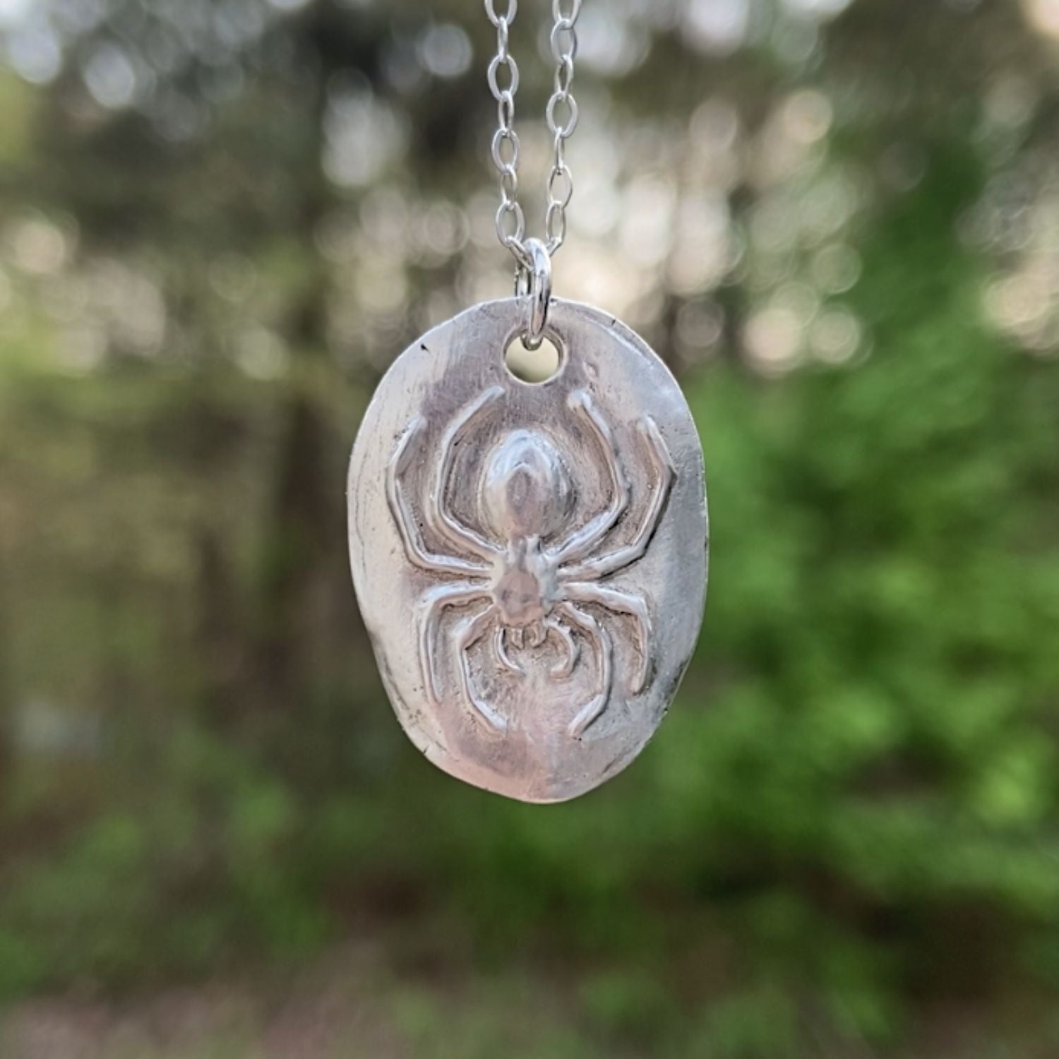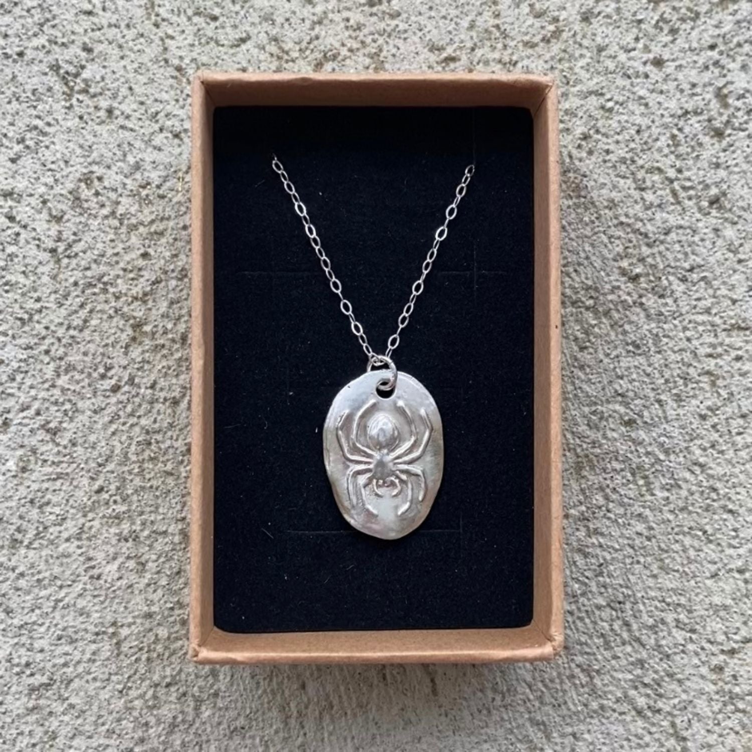 Handcrafted in fine silver, this intricate spider necklace symbolizes creativity, patience, and the quiet strength found in nature’s weavers. Wear it as a symbol of resilience and personal growth, or simply as an enchanting piece of wearable art.